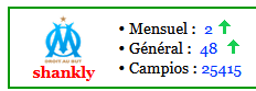 Journée 1 : shankly 0-1 barbiegirl Journée 2 : PHILOU49 1-4 shankly Journée 3 : shankly 8-5 kopacabana Journée 4 : srfc61 4-10 shankly Journée 5 : shankly - Fefe18 Journée 6 : usbco59 - shankly Journée 7 : shankly - thothom Journée 8 : JEAN MI OL - shankly Journée 9 : shankly - Randy607 Journée 10 : sheldoncoop - shankly Journée 11 : Coco - shankly Journée 12 : shankly - seb50 Journée 13 : tigeryl - shankly Journée 14 : shankly - lorelys Journée 15 : souriceau - shankly Journée 16 : shankly - badlolo Journée 17 : Blaugrana - shankly Journée 18 : shankly - plies Journée 19 : fankournikova - shankly |