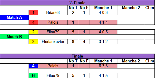 Ps : Les favoris de Jo-Jo : Stef081 ... 1er tournois et Filou79 .... 3 ème tournois et 1 finale perdue