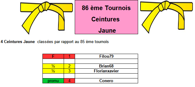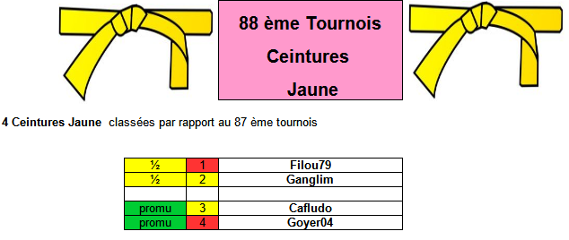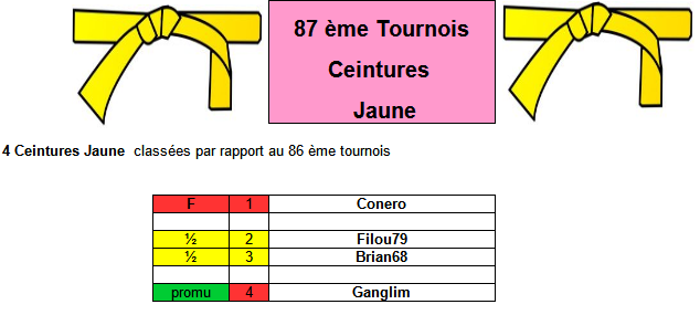 Pour chaque Tournois on aura 4 ceintures Jaune classées dans l'ordre du tournois précédent :