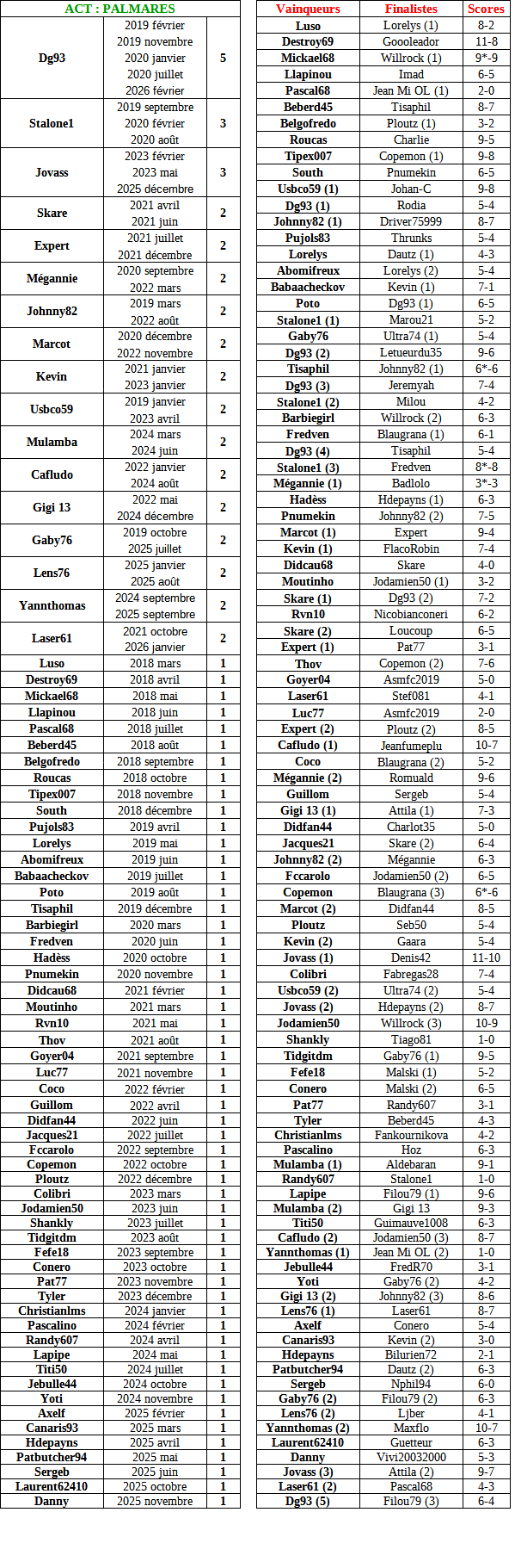 ACT FEVRIER 2026 - Vainqueur : dg93    Staff    01/02 16:53 Citer Staff