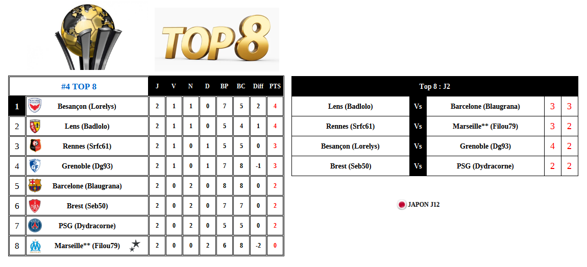 Et bien il y aura un Top 8 Promo du groupe E à H, les 2 premiers iront dans un top 8 montants et les 3 premiers iront remplacer les 3 du top 8 Elite