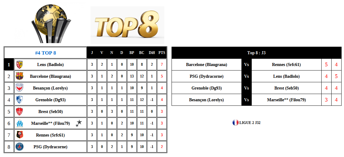 Rouen (Frasab) sera absent pour la prochaine saison (sauf si j'augmente les participants via le top 50)