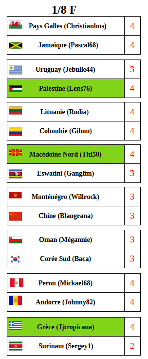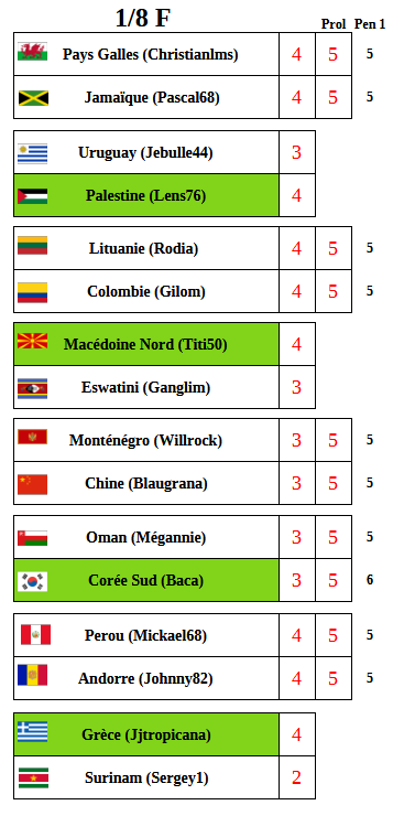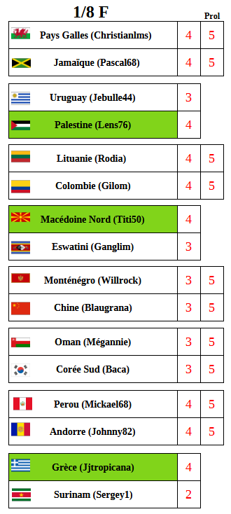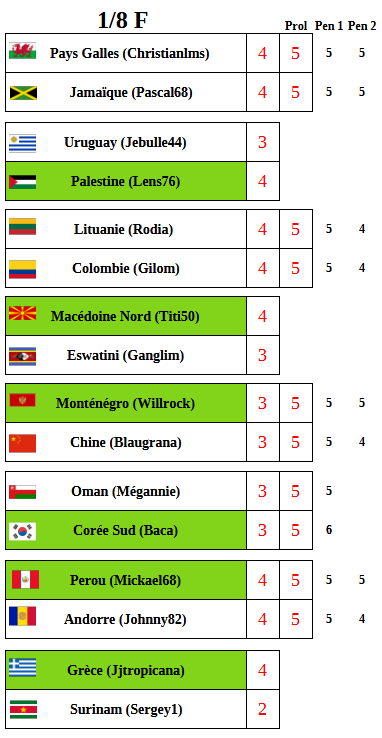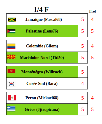 Un changement, le PEROU (Mickael68) remplacera le PARAGUAY (Zbol) celui-ci ne pronostique plus depuis le 23/01