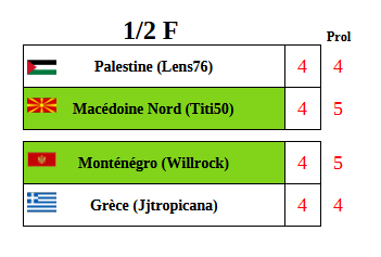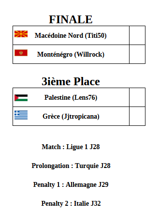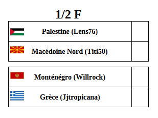 Finale et 3ième place     cafludo    08/04 16:34  Citer cafludo