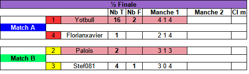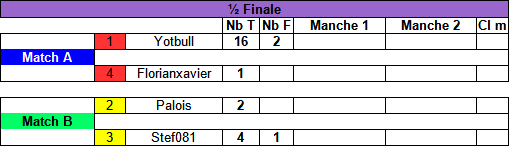 Les 2 perdants en 1/2 finale seront 2éme et 3éme