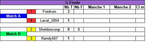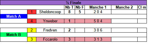 Les 2 perdants en 1/2 finale seront 2 ème et 3 ème