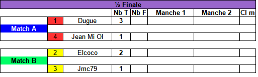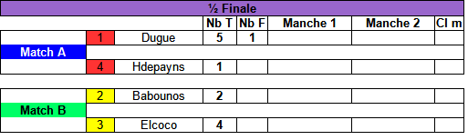 Les 2 perdants en 1/2 finale seront 2 ème et 3 ème