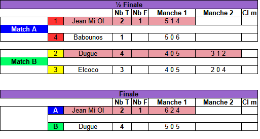 Ps : Le favori de Jo-Jo : Beberd45 ... 4 ème tournois et 1 finale perdue