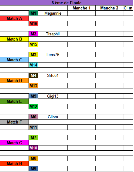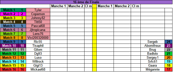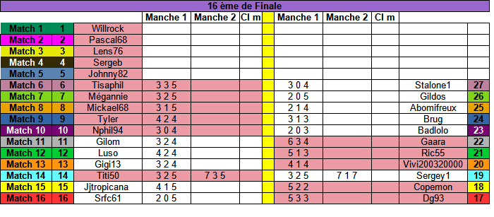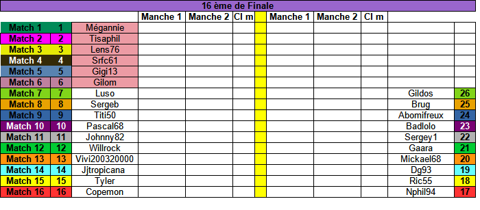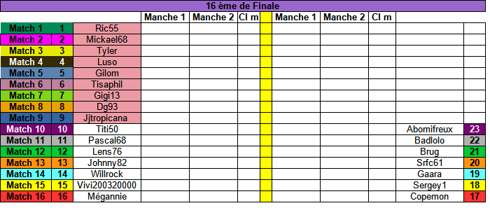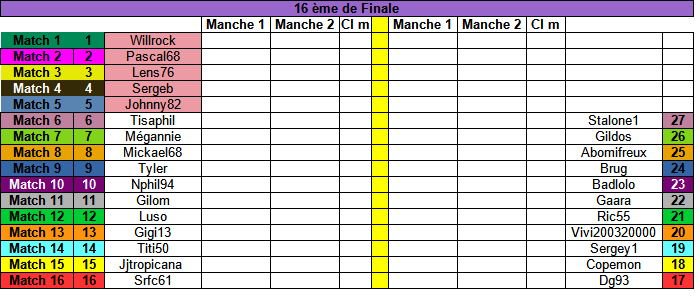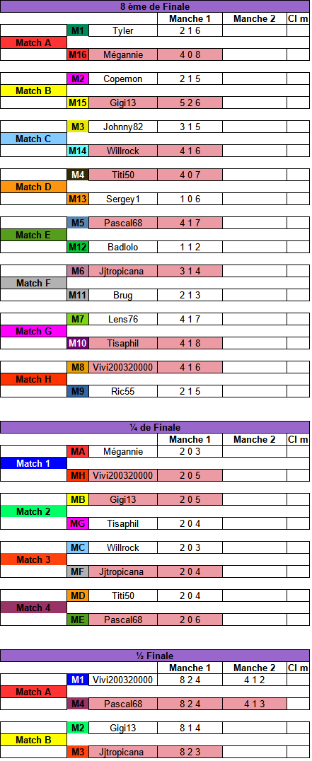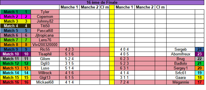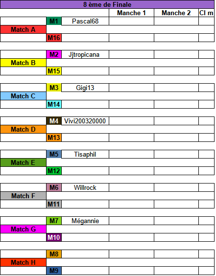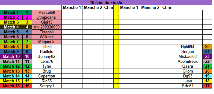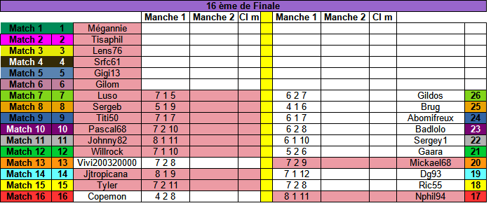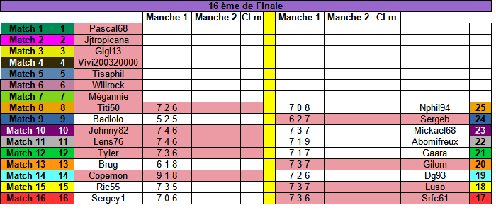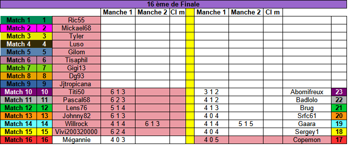 à toi de gagner ton 16 ème de finale pour aller plus loin dans chaque tournois
