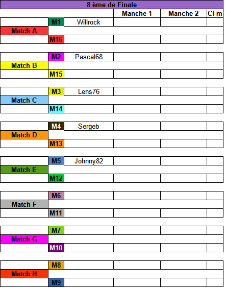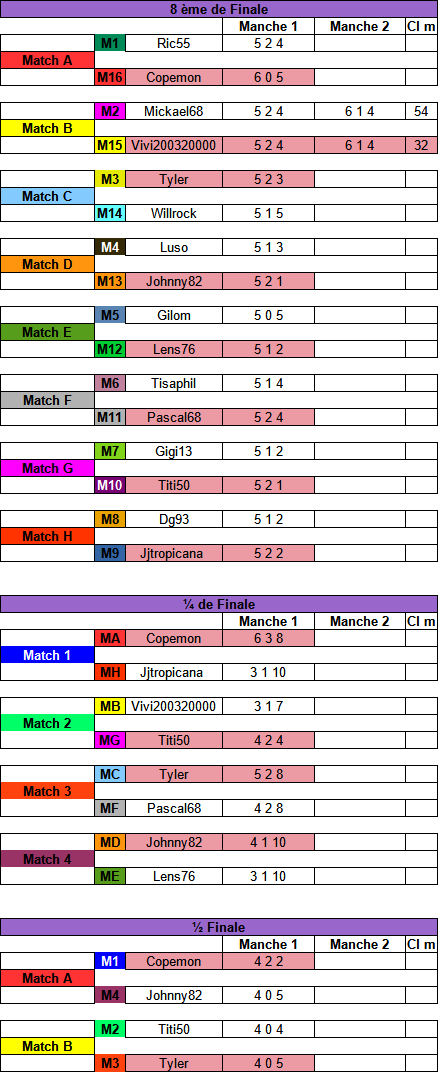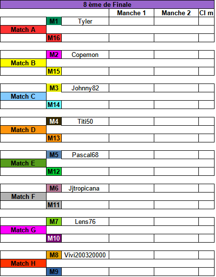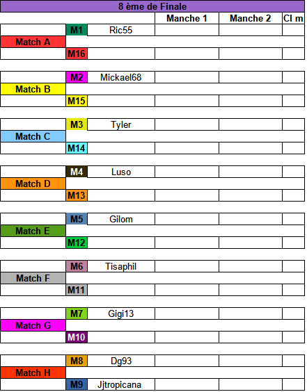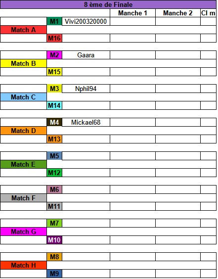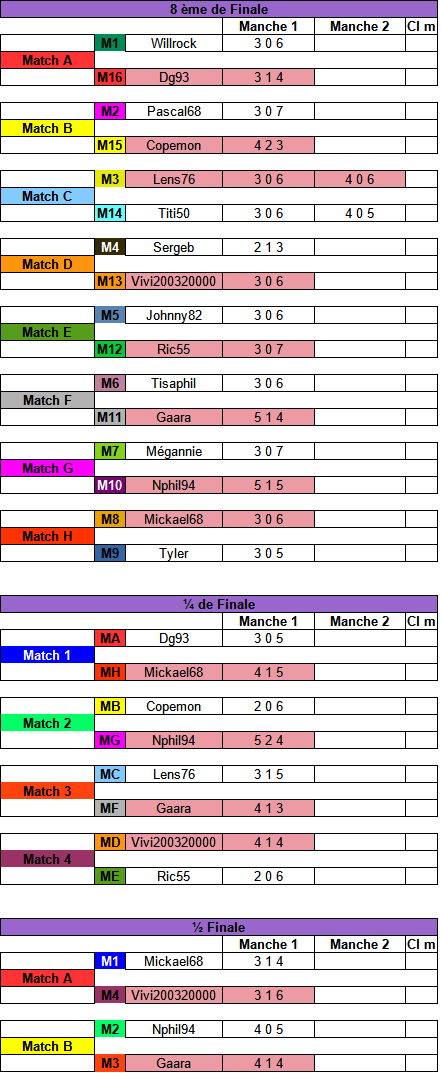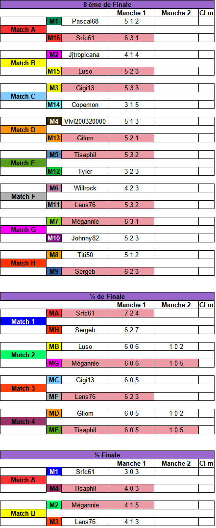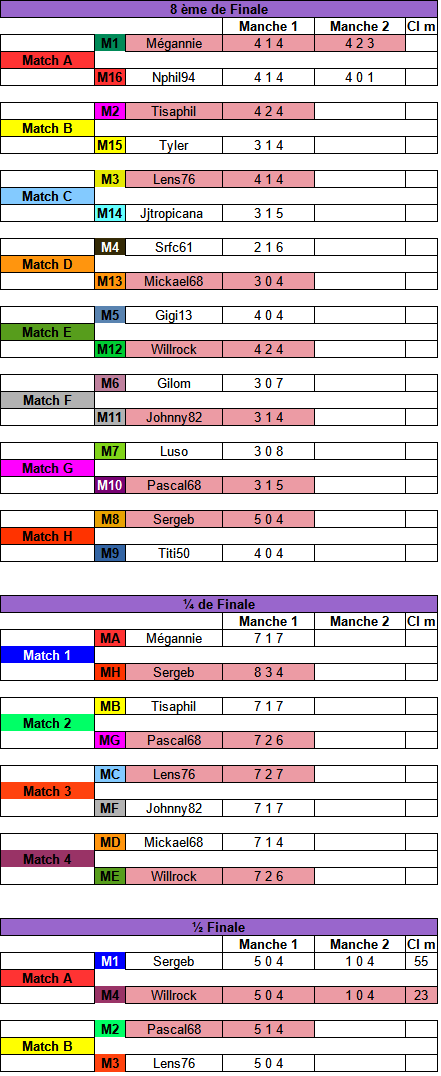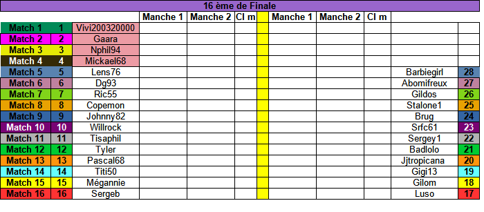 à toi de gagner ton 16 ème de finale pour aller plus loin dans chaque tournois