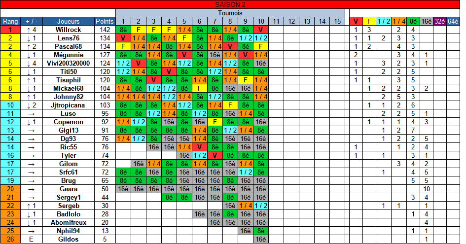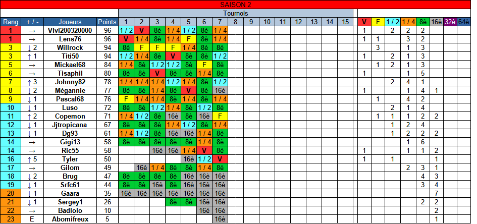 T'intègres le top 16 en 16ème mais tu ne participes quand même à aucun tournoi, même pas au premier. A ce rythme, je ne risque pas de beaucoup progresser au classement.