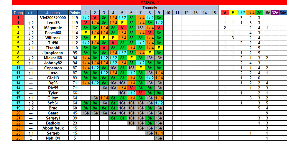 15 tournois qui forment 1 saison ... ensuite on entamera une nouvelle saison