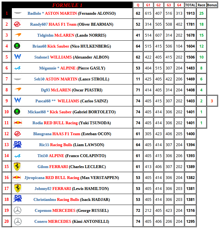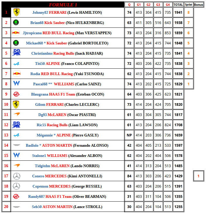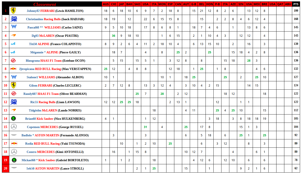 F1 2025 Brésil Résultats Course    cafludo    29/10 15:02 Citer cafludo