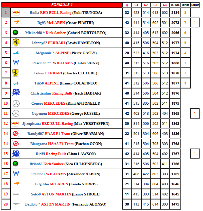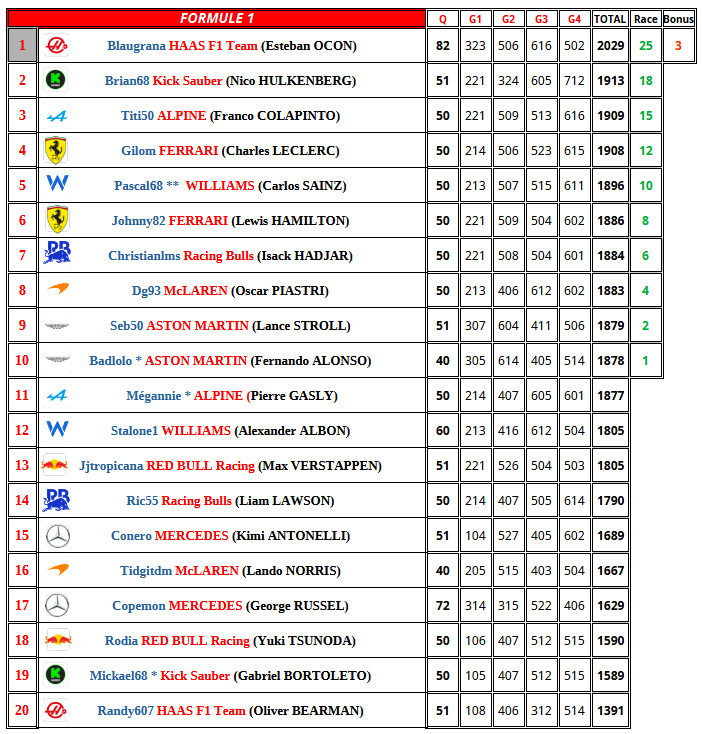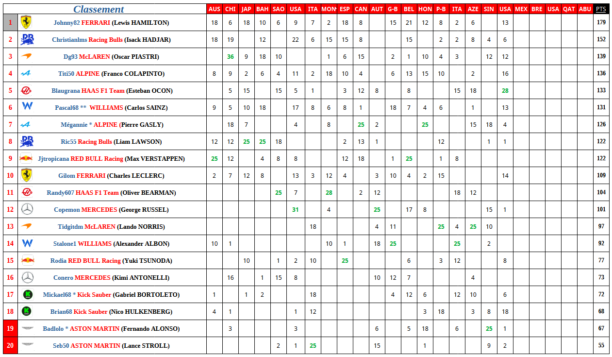 F1 2025 USA Résultats Course    cafludo    04/10 08:06 Citer cafludo