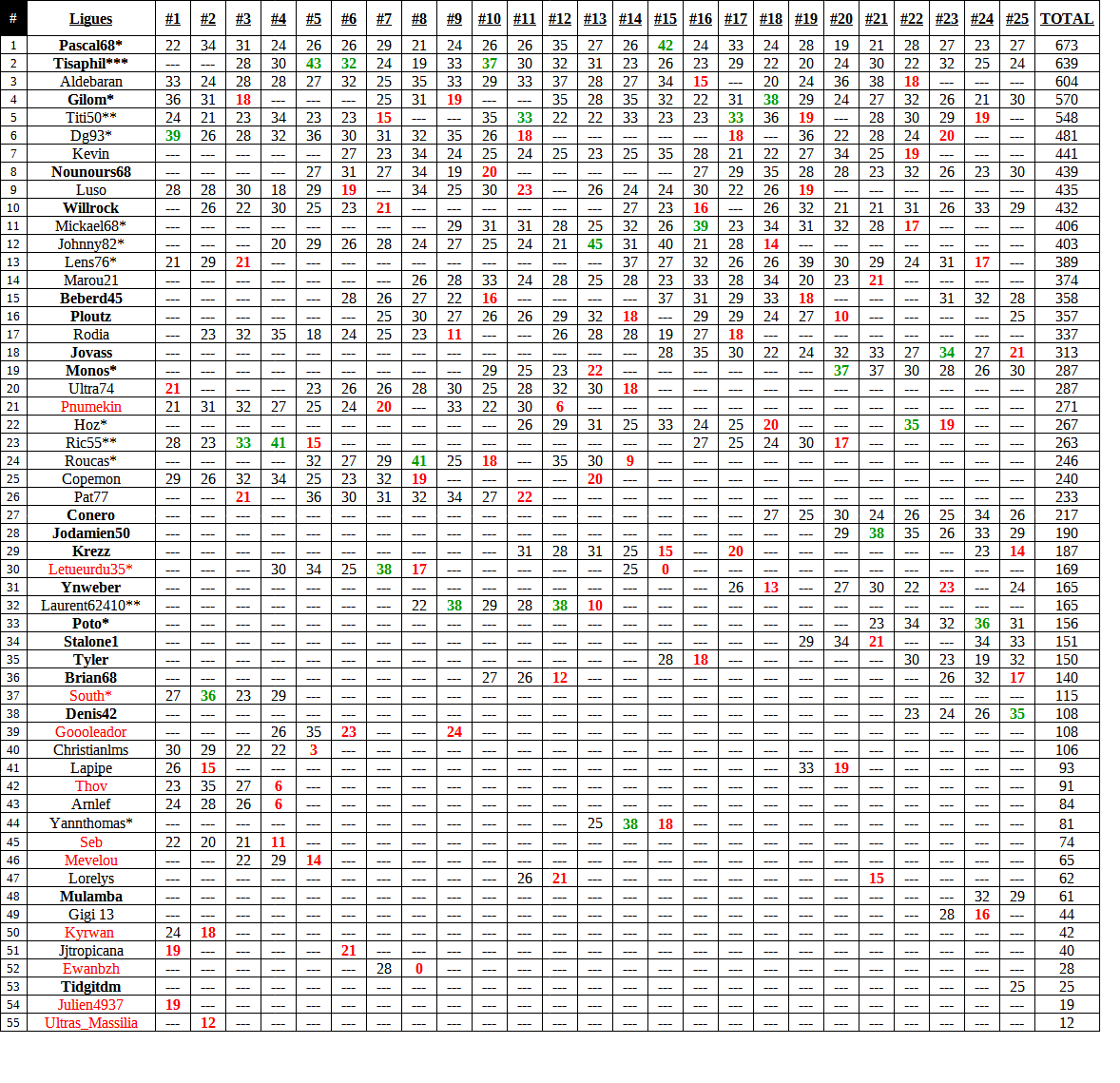 Perso, je joue un peu de tout en terme de score, mais à de très rares exceptions, je me retrouve à voir mes pronos comme des 3-0, 2-0, 4-2, 3-1 etc en ligue, alors que par ailleurs, je pronostique ces scores. Je précise, je ne fais jamais mes pronos en fonction des matches proposés en ligue, ni de mes adversaires du jour, mais uniquement des écarts que je pense voir (ou mal voir ) en pronostiquant mes matches.