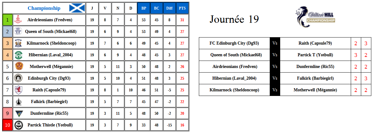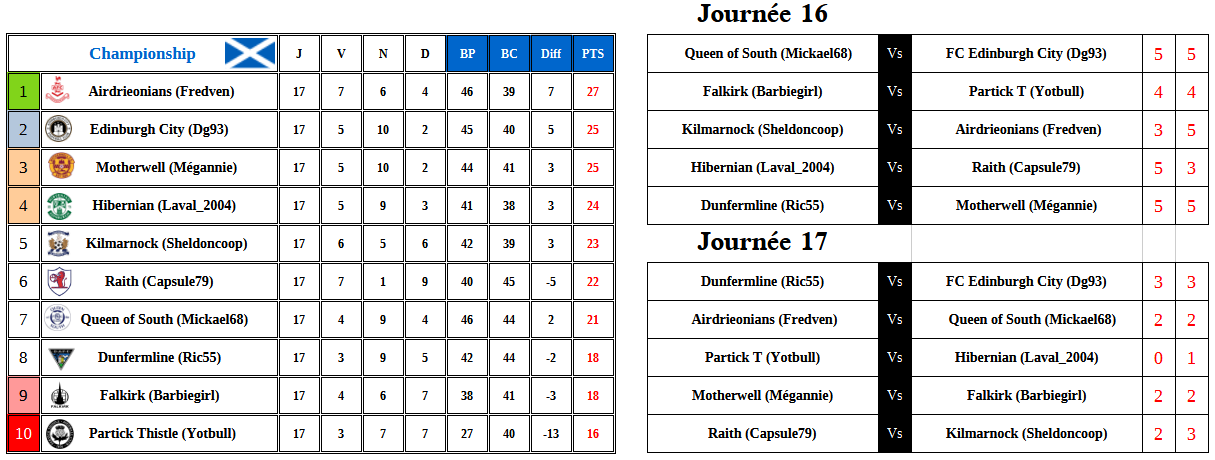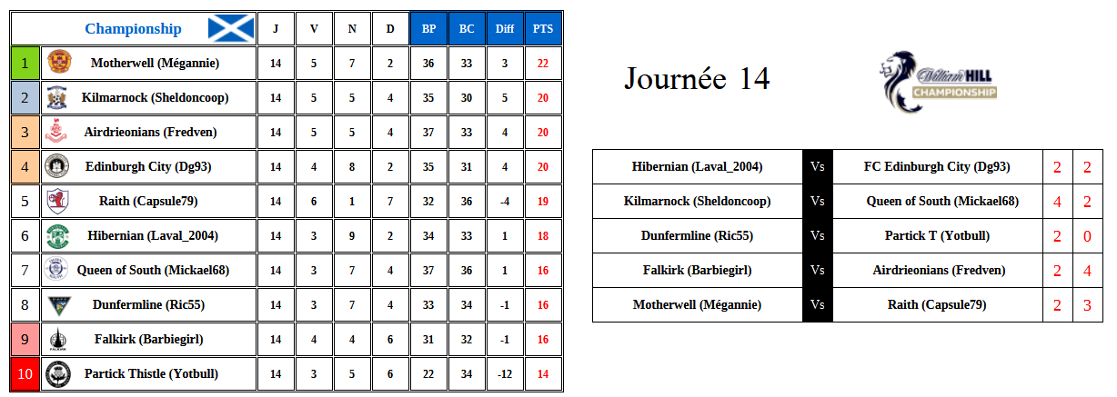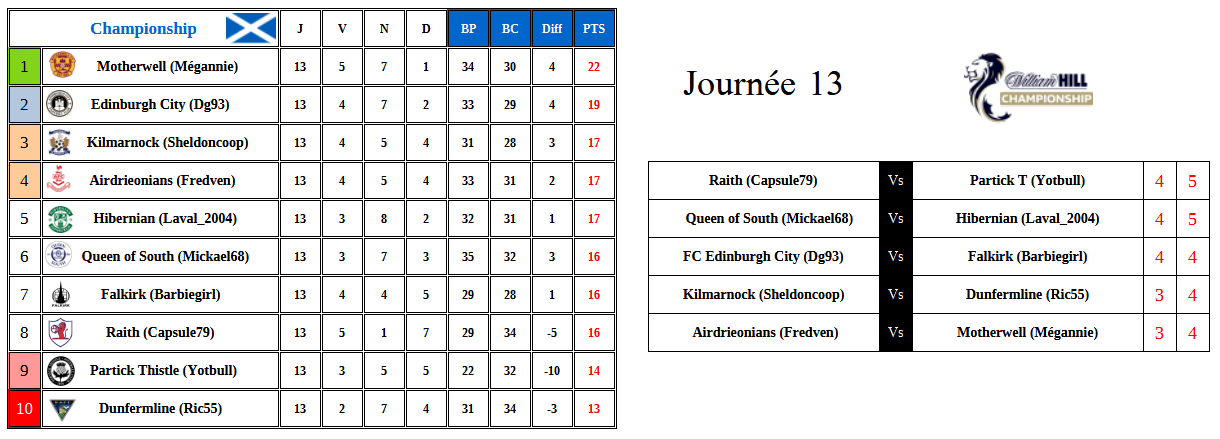 La 13 ème journée .....    Filou79    25/11 14:45  Citer Filou79