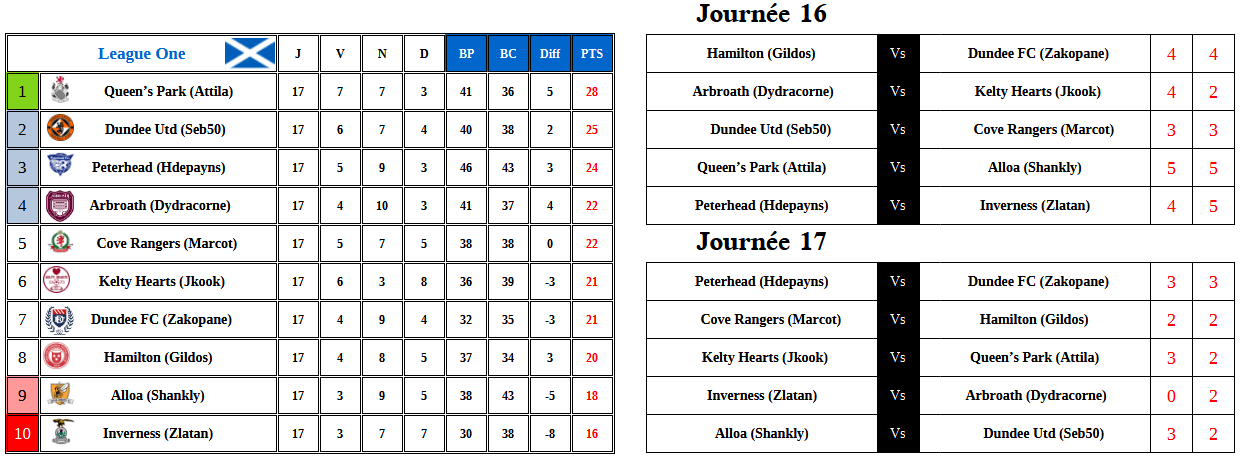 Premiership    cafludo    28/10 17:19  Citer cafludo