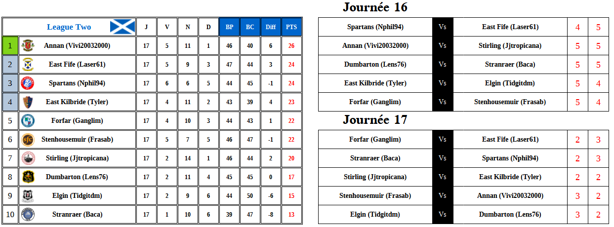 League 2    cafludo    28/10 17:20  Citer cafludo