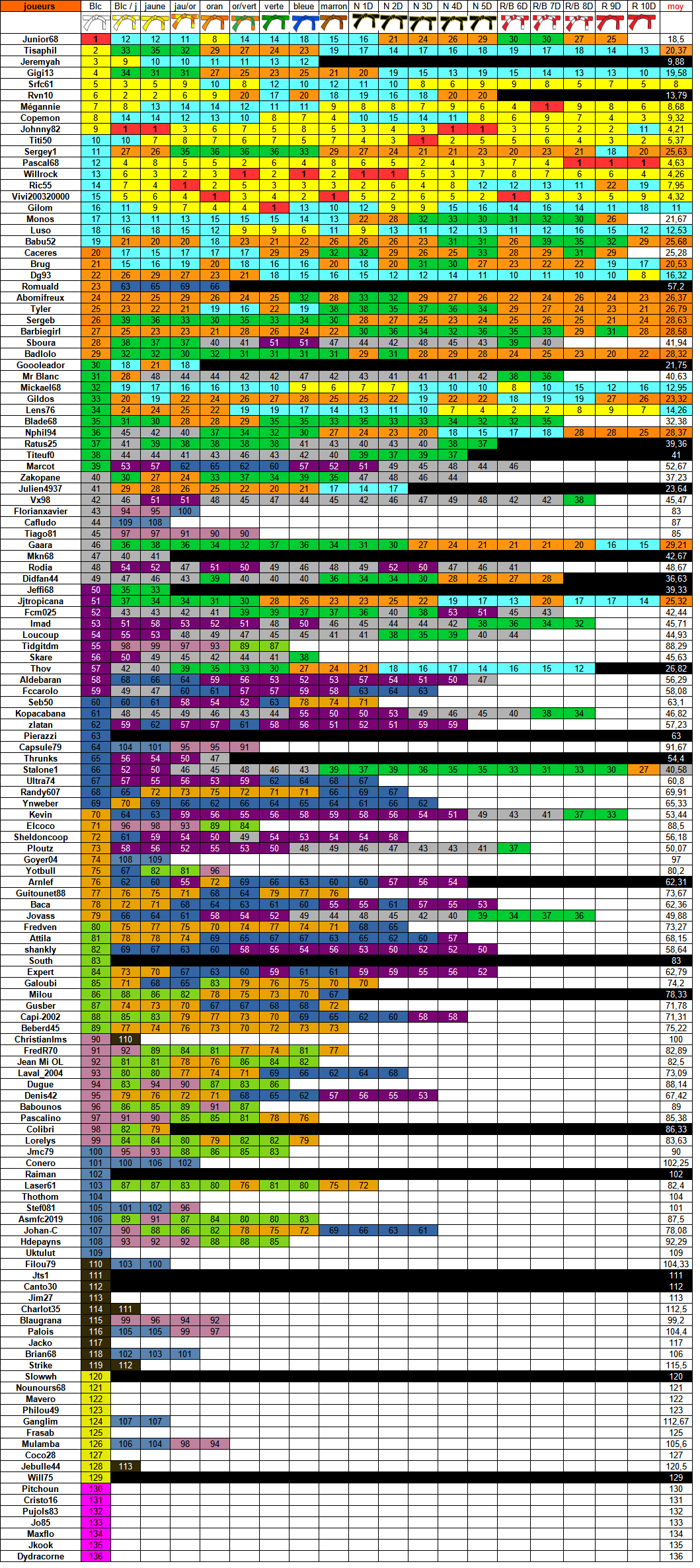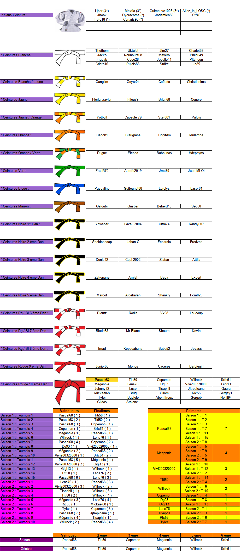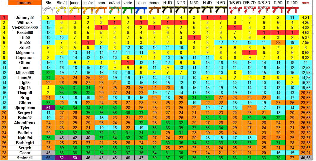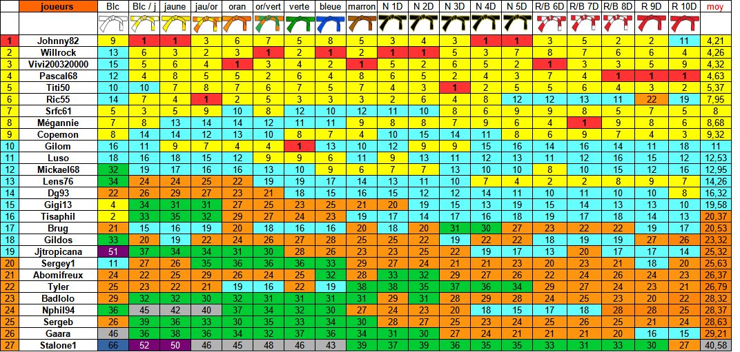 Tu as était le 79 eme joueurs à avoir la ceinture blanche et le 66 ème joueur à avoir la ceinture blanche / jaune