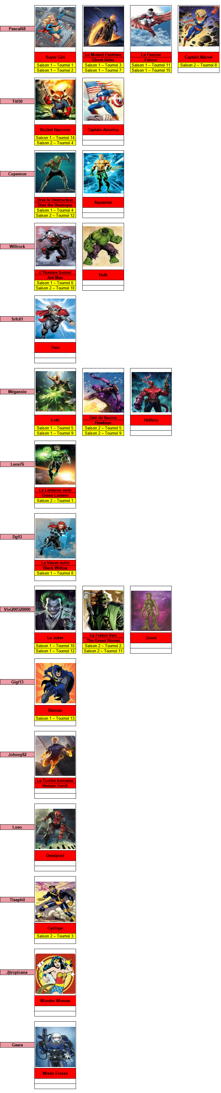 Le tableau sert à ça pour chaque joueurs